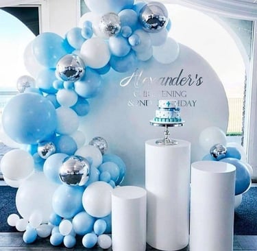 Balon Dekorasi yang terdiri dari : Balon Standing, Balon Gapura dekor, Balon Bunga, Balon Lampion, Balon Drop, Balon Centerpiece, Balon Ceiling, dan dekorasi styrofoam.
